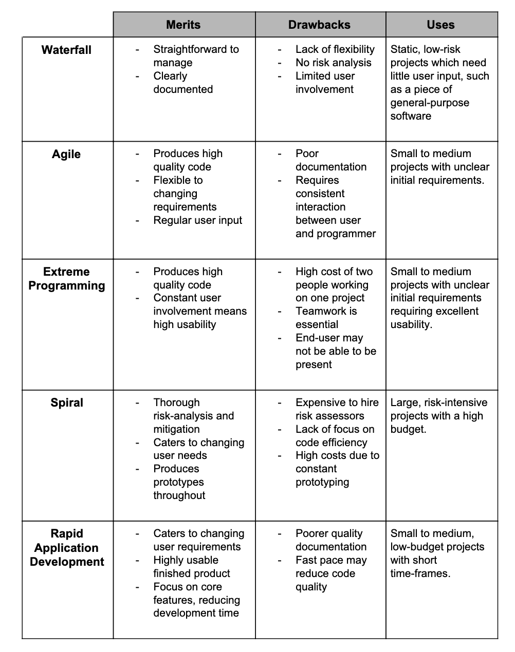 Similar to Agile, RAD makes use of prototyping and user feedback.