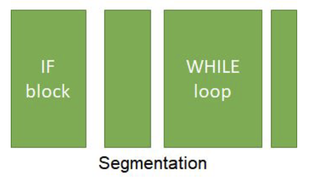 Segmentation is the splitting up of memory into different sized chunks to fit the program running.